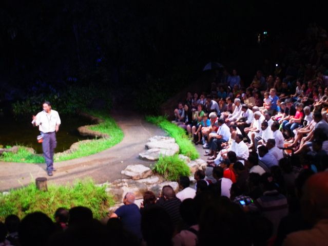 人気のあるオプショナルツアーと聞いて今回の旅行で参加させていただきました。日本人をはじめ、たくさんの観光客でいっぱいでした。夜とはいえ、ムシムシした中で食事をいただき、火のショーを観て、トラムに乗り込みました。日本語ガイドの説明通りに動物たちがちょうど見える場所にいるので うまくできているなと感心しました。時間があったのでガイドのマークさんについてウォーキングトレールで説明をしていただきました。こちらの方が個人的には良かったです。トラムでは見れなかった動物や大きなこうもりもいました。残りの時間はショッピングで費やし、帰りも思ったより早く着き、それぞれのホテル前まで送っていただいたのでとてもラクでした。