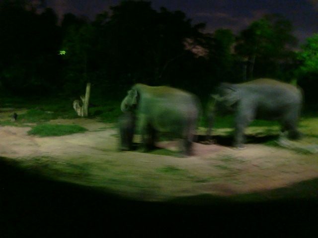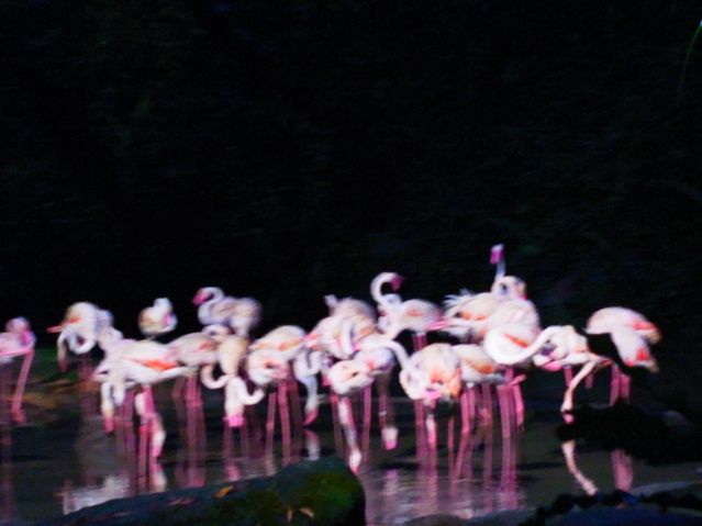 トラムでは日本人のガイドさんがいろいろと教えてくれました。動物の名前がややこしくてあまり覚えられませんでしたが。そして確かに昼間より動物たちは活発でした。ゾウがよく動いていました。ただ、暗いのではっきりくっきりとは見えません。