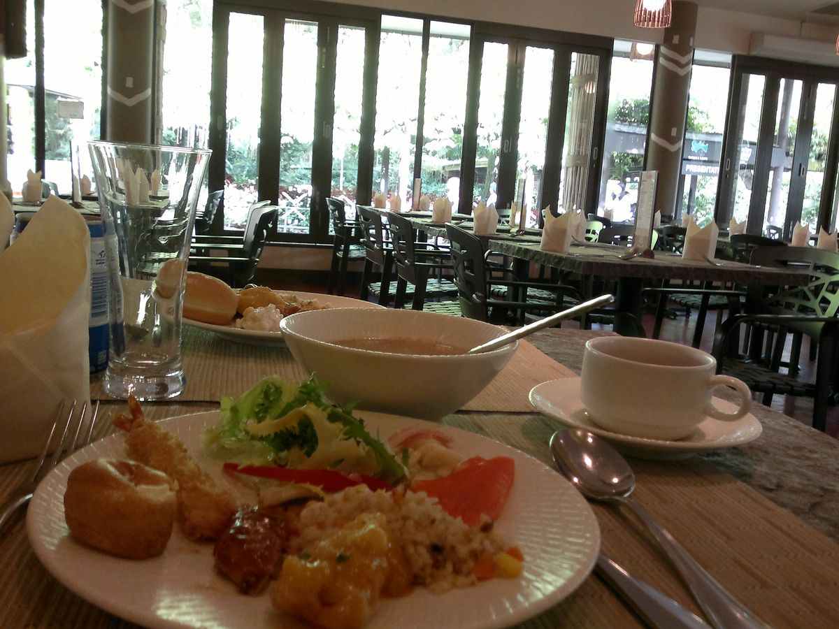 JTBがやっている現地ツアーだったので、シンガポール動物園内のレストランを貸し切った(?)バイキング会場になっていました。ガイドブックに載っているナイトサファリのインターナショナルビュッフェではなく少し残念でしたが、余った時間にシンガポール動物園も見せてもらえたので、その点は良かったです。