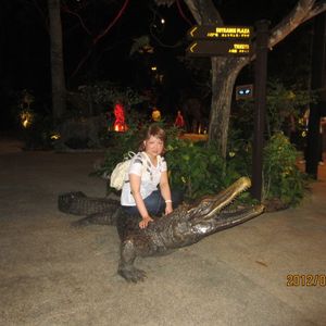 私が参加したのは夕食なし・現地解散タイプでした。書き込みにあったとおり、夕食つきのひとが食事している間、ヒマなくらい時間はたっぷり。お魚に足をお掃除してもらったり、おみやげみたりウロウロして時間をつぶしました。食事するところは、奥に地元料理っぽいところがありますが、入り口近くのバーガー屋さんのむかって右のほうの席でゆっくりすると ファイアーショー(開園直前くらいにはじまる)がよく見えます。