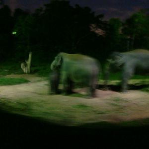 トラムでは日本人のガイドさんがいろいろと教えてくれました。動物の名前がややこしくてあまり覚えられませんでしたが。そして確かに昼間より動物たちは活発でした。ゾウがよく動いていました。ただ、暗いのではっきりくっきりとは見えません。