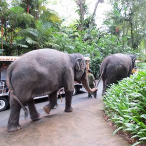 午前中ゆっくりしたかったので、午後から動物園に行きました。シンガポールの気温はだいたい27度でしたので、涼しい時間に参加できました。動物園について園内のバスが利用できますが、歩いても楽しめるので歩いて見学をしました。ちょうどキリンに餌をあげる時間帯だったので、あげたい人が結構ならんでいました。びっくりしたのは、どこかのブースで屋根があるんですけど、なんかにぎやかだなっと思って上を見たらたくさんのこうもりがいました。一時。凍りついてしまいました。そして、見学が終わり、ショーがあるので会場に向かう途中、並んでいる列がありました。見に行ったら、象の背中にのれるらしく、並んでいました。時間があったらのってみたかったです。食事は、ビュッフェでとてもおいしかったです。カレーもコクがあり、おすしもありました。そのあと、時間があったので、おみやげを見て、夜のナイトサファリ-に出かけました。ナイトサファリ-の前にトイレに行ったんですが、すごい混んでいました。トイレットペーパーがないところもありました。ティシュとWETティシュは必需品です。後、動物園はどこにも喫煙所がありません。禁煙覚悟です。来年はパンダも動物園にくるみたいです。