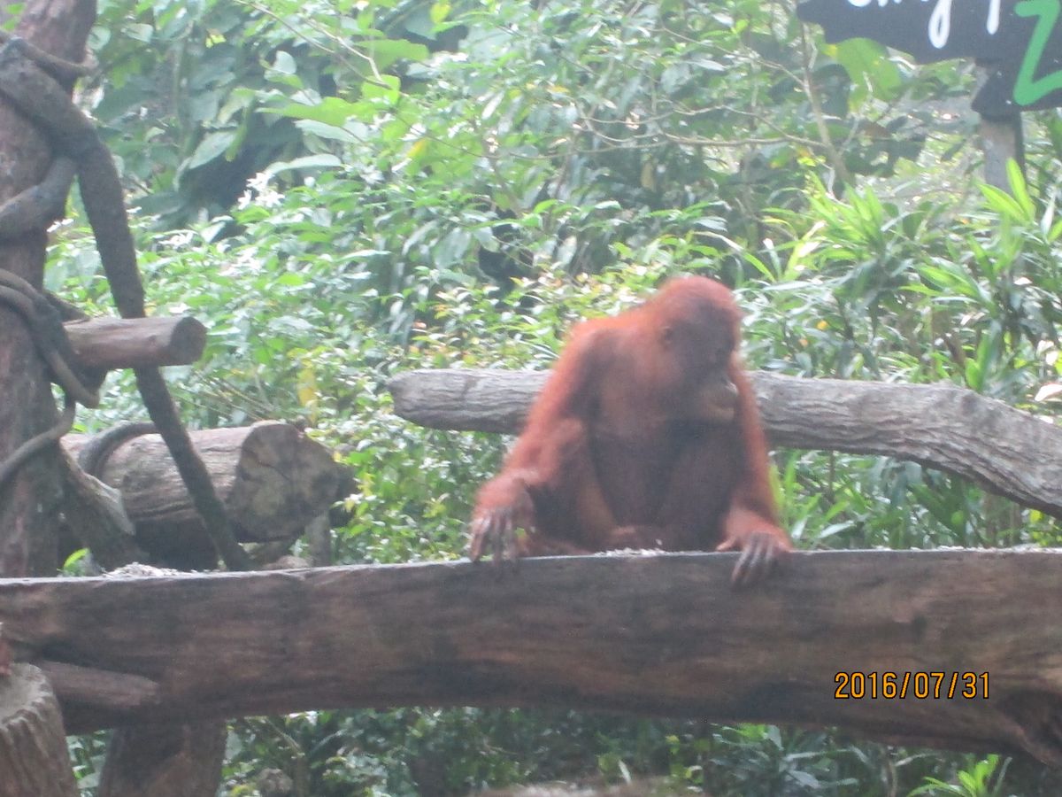 バスは8時にホテルへ迎えに来たが、他のホテルにも行くので、結局動物園に着いた時は9時半近く。それから朝食なので、既に沢山の人が来ており、席もオランウ-タンから遠いので、一緒に写真を撮る時は後ろに並ばなければならないから、帰りのバスに間に合わせるためには、園内を回りきれず時間が足りません。