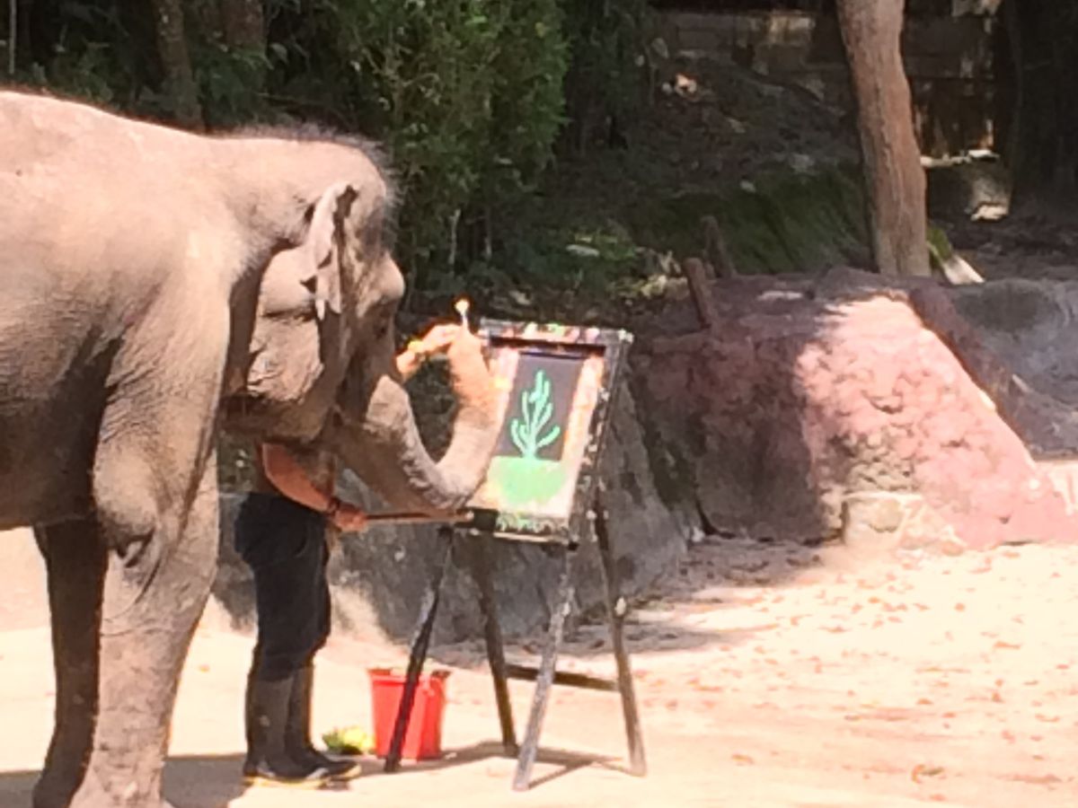 ホワイトタイガーもお堀越し、絵を描く象も見られて貴重な体験をしました。
