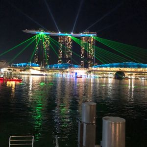 私達はマリーナ・ベイ・サンズ&ガーデンバイザベイで光のショー+クルーズのみで、夕食とフライヤー乗車はしていませんが、混んでるにも関わらず、時間通りきっちりのスケジュールで、マリーナ・ベイ・サンズ&ガーデンバイザベイもとても良く見れました。マリーナ・ベイ・サンズは少々遠くからの観賞でしたので、音楽があまり聞こえず、夜景やライトアップを楽しむ感じでした。マリーナ・ベイ・サンズの光のショーを観賞した場所は、マーライオンも近かったです。滞在時間があまりなかった私たちにとっては、マーライオンも間近で見れて、ラッキーでした。
