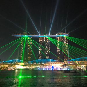 ・マリーナベイサンズのショーは対岸の為、レーザー光線とライトアップしか見れず。
