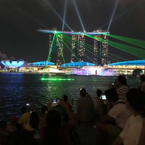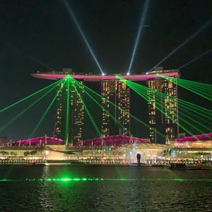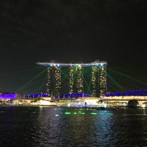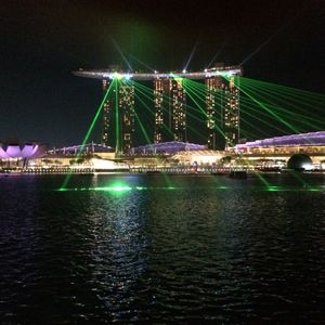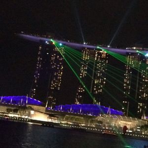 マリーナベイから見る「スペクトラショー」はショーの場所から距離が離れていて音楽もあまりよく聞こえませんでしたが、マリナベイサンズから出るレーザー光線のイルミネーションを対岸から見ることができました。