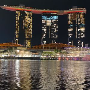 日没から始まるナイトクルーズ。シンガポールリバーを船で周遊します。涼しい風に吹かれながら、サンズやマーライオンなどのライトアップを水上から眺め、歴史的建物にも触れることが出来ます。ガイドさんの説明も興味深く、とても楽しめました。