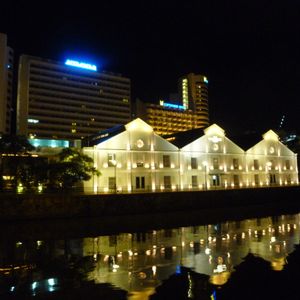 夕暮れ、店の看板の灯りも雰囲気が良かったです。