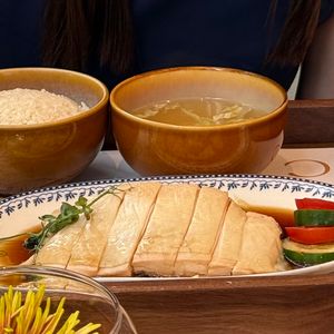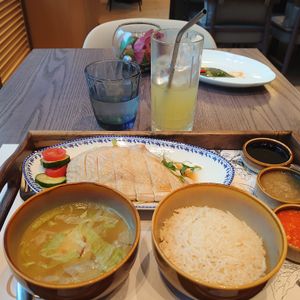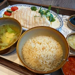 ヒルトンの5階にエレベータで行くと、案内があって、場所はわかりやすかったです。前菜、主菜、デザートとどれも美味しかったです。値段は高めと思いますが、きれいな場所で、落ち着いて食事できました。旅行での滞在中、チキンライスは何回も食べないと思いますので、ここで食べておけば間違いないのでしょう。