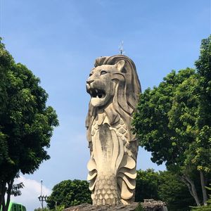 マーライオンは大きく、中にも入れて大満足。添乗員さんの女性のしんさんの歴史や、マーライオンの中での説明もわかりやすくて、写真も撮っていただき、本当にお世話にになりました。名物チキンライスも、飲み物、名物サテー、副菜、デザートも付いていて、美味しいレストランでした。