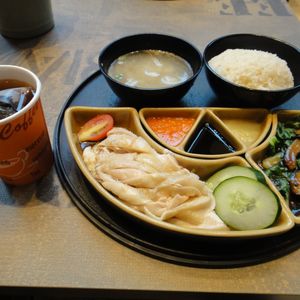 昼食のチキンライスはとても美味しかったです。温かいお茶がつきますが、店内はエアコンもきいているのでほっとします。昼食時間は45分あるかないか、だったのでドリンクを別オーダーしたり、子連れだとちょっとハードでした。