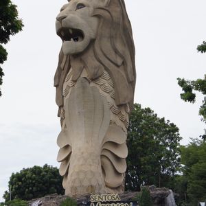 セントーサ島や日曜日なので混んでいると予想していたが以外に閑散としていた。ツアーの参加者は我々だけであった。シーアクアリウムの巨大な水槽は見る価値はある。他の水槽も子供を連れていれば楽しめたのかもしれない。ガイドさんはアクアリウムの中へは付いてきてくれないので、説明無しでなんとなく歩き回ったという感じ。アクアリウム内で有料で入館する4D映画館は大人は感動しない、やはり子供連れの家族向けです(でも、時間が余ったので見ました。音響と伴に椅子が振動したり、船が沈むシーンでは座席が上下に動いたり、水しぶきが掛ったり、etc)。セントーサ島のマーライオン像は、マーライオン公園のマーライオンより大きくて、内部にも入れたので、やや楽しめた。