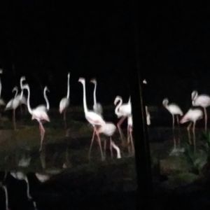 動物園の後で、1組のご夫婦と合流して、夕食をとった。夕食中にスコールになって、火縄ショーは中止となった。ガイドさんの計らいで、ナイトサファリとウォーキングの順番を変えて、ナイトサファリを先にした。結果的にはこれが大変に良かった。ナイトサファリは雨天決行でしたが、途中で雨はやんでおり、むしろ涼しくなって丁度良かったです。事前に体験談を読んでいると「動物がいない」、「暗くて見えない」という記事があったので心配していたが、動物はほどほどに良く見えた。ただ、やや暗いので、白黒写真を見ているようであり、注意深く見ないとどこに居るのか解らない動物もいた。「動物がいない」という体験談を書いた人はよっぽど運が悪かったのであろう。ナイトサファリの後のウォーキングでは、ガイドさんが付いて、ひとつひとつ動物を指さして説明してくれた(暗かったけど良く見るとそこには動物が居た!)。餌やりの現場にも出会えた。ある意味、ナイトサファリより貴重な体験であった。
