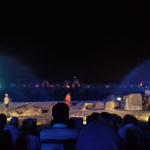 ソング・オブ・ザ・シーは、ミストにレーザーを当てて、空中に映像を映し出しながら、パフォーマーが歌って踊るショーです。