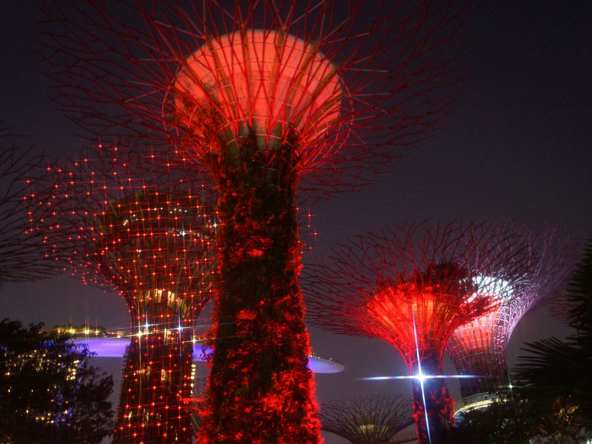 次に、夜8時45分からのガーデンバイザベイ 光のショー『ガーデン・ラプソディ 』もメロディに合わせて青・緑・黄・赤・ピンクなどカラフルに輝く、壮大なショーでした。
