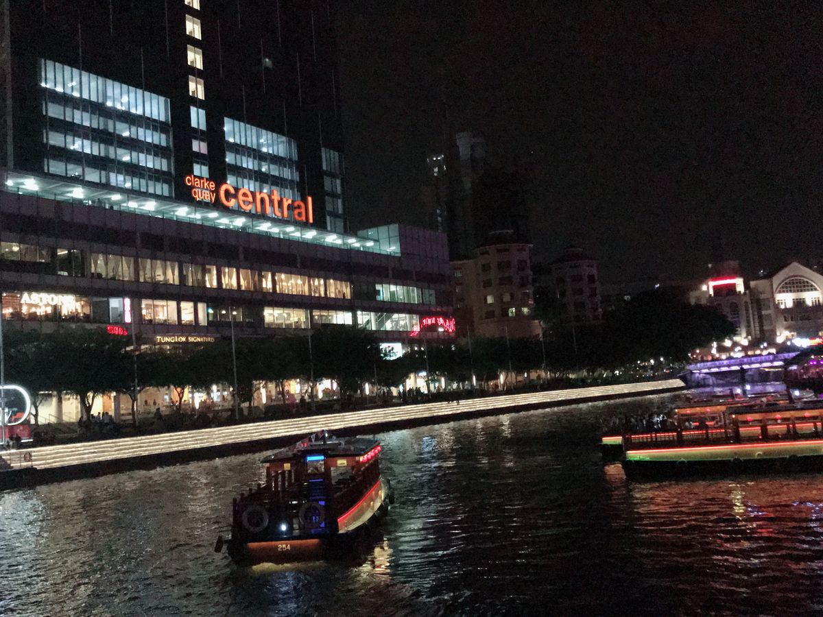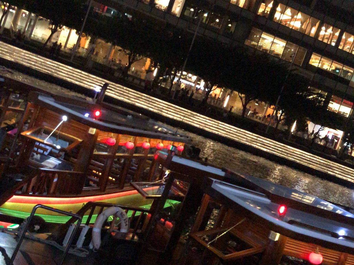 その後はハジレーンに行くのかな?と思いましたがスルーしてクラークキーで乗船。ガイドさんとはここでお別れでした。プチ船旅はマリーナベイのあたりでショーが行われていたのもあり夜景がとても綺麗でした。