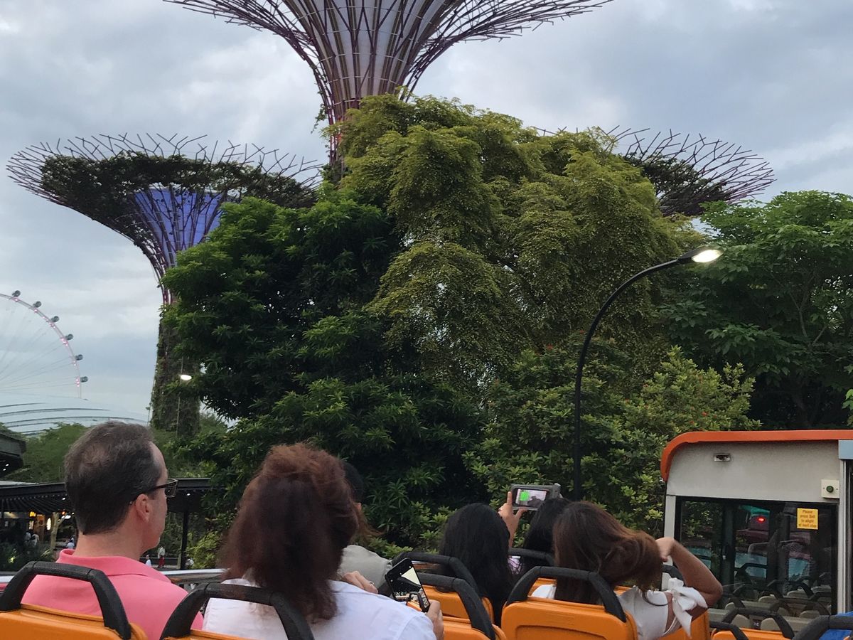 15分で急いで食事してバスへ。二階バスは風が気持ちよく、ガーデンバイザベイまでの風景が綺麗でした。