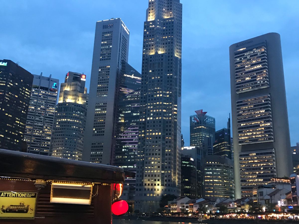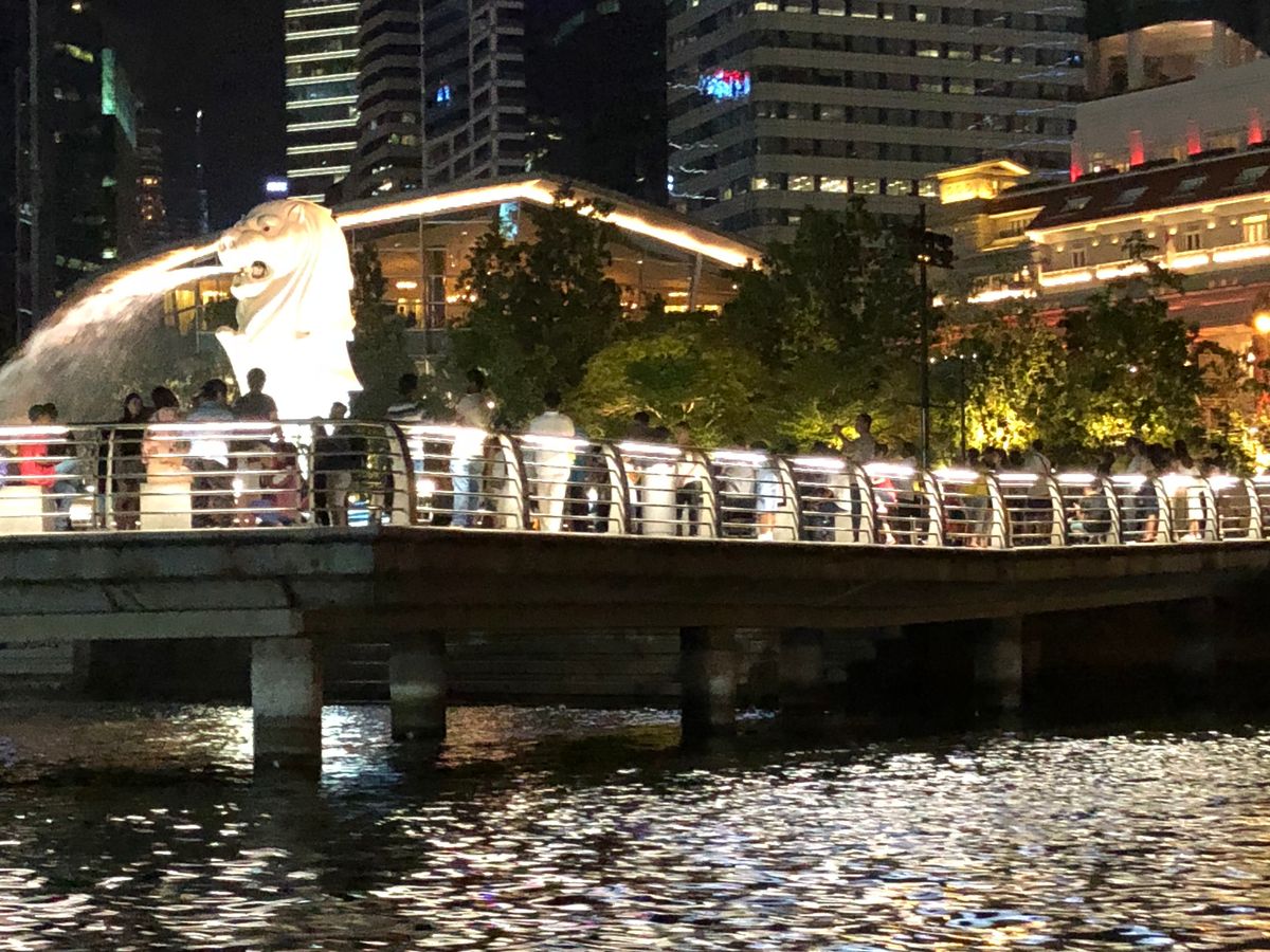 最後のクルージングは心地いい夜風に吹かれながらクラークキー、マーライオン、マリーナベイサンズと主要な夜景スポットを見ることが出来るばかりでなく、その他のシンガポール川沿いの建築物についても説明(英語)が流れていて良かったです。