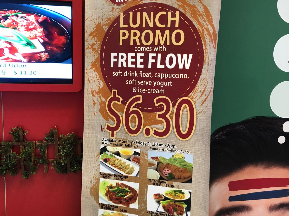 4.6ドル、5.6ドルの12種類ほどの料理の中から選んでと言われ、2人で2種類選び、はみ出た分が20セントのはずですが60セントを払ってとの事でした。クーポン用のミールなら全部5ドルにすればいいのになと思いました。味も微妙でした。