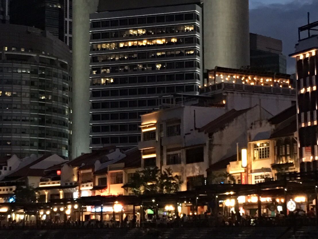リバークルーズは夕景から日暮れまでのタイミング、娘の要望で2度目の乗船でしたが湾の中から見るベイサンズやシンガポールの夜景は大変美しく皆さん写真に収めていました。