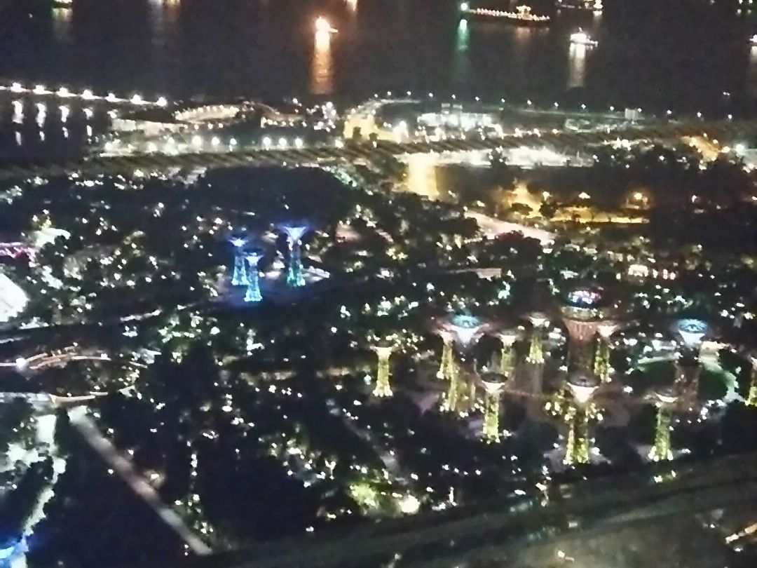 夜景がとても綺麗でした。夜のガーデンズバイザベイのショーも丁度よい高さから見れたしスカイパークからの夜景も感動。