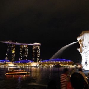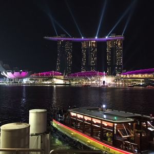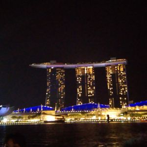 クラークキーより、TDLの蒸気船みたいなので、日本語ガイドを聞きながら、マリーナベイサンズの目の前のハーバーで降ります。8時からのライトアップショーを見て、終わり次第すぐ集合。次は、ガーデンバイザベイのライトアップと音楽ショーを見て、またすぐ集合。ピックアップされて次は、シンガポールフライヤーに乗車。