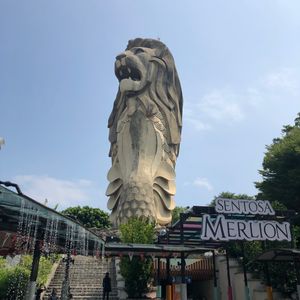 送迎バスで セントーサ島に入り、 まず最初に 巨大なマーライオン前で 写真(自前のカメラで)を撮ってもらいます。