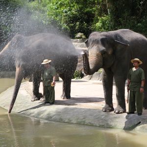 動物園への参加は私たち親子二人だけだったので、ガイドさんと一緒にタクシーで動物園まで向かいました。車中はシンガポールの様々なお話が聞けてとても勉強になりました。道路がすいていたのであっという間着いてしまいました。朝食のバイキングはどれも美味しくて食べすぎてしまいました。オラウータンやヘビとの写真撮影も楽しい体験でした。アシカショーもぞうさんのショーも本当に楽しくて思い出に残りました。シンガポールへ行ったら是非おすすめです!