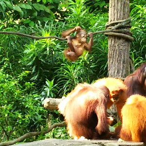 夏の動物園と聞くと炎天下の中を歩いて回るイメージがあるかと思いますが、全然違いました。森の中の動物園なので、思ったより快適。入ってすぐ、看板にサルが出迎えてくれてテンションが上がりました。オランウータンとの朝食は席が離れていたけど、一緒に写真も撮れて、良い思い出となりました。檻や柵が無い動物園は本当に楽しかったです!トラムで回るより、歩いて回る方が断然楽しい。大人の私が楽しめたのでお子さんはもっと楽しいのでは?是非、スニーカーと飲み物は忘れずに。リバーサファリは、ジャングルクルーズがお勧めです。アマゾンの川を下りながら動物を見つけるのは楽しくて、もっと乗っていたかった。2つの動物園、時間を気にせずゆっくり楽しめました。