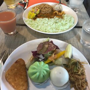 チケットをもらいトラムやショーの説明を受けてから、ブッフェスタイルの朝ごはんを食べました。メニューはホテルの朝食といった感じでアメリカンブレックファースト+ローカルメニュー。