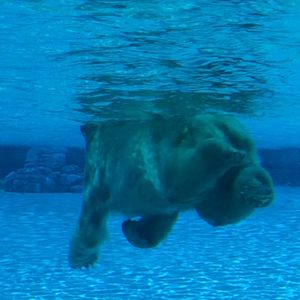 ガイドさんおすすめのシロクマのえさやりに感激。