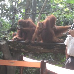 オランウータンは飼育員にとても慣れていて、何かの合図で餌をもらうために集まってくる習慣になっていました。とても愛嬌があって賢くてかわいいです。