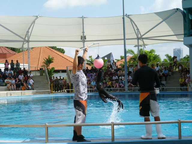 深夜便での帰国直前に参加しました。到着してからアニマルショー集合まで一時間半ほどあり、お土産探しと食事(市内の倍はしますが、まあ許容範囲かと)、火吹きショーのチラ見で過ごしました。FISH SPAも見かけました。