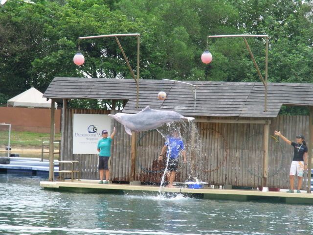 ピンクイルカは個体によって色が違うようで、写真みたいなピンク色!なイルカとそうでないイルカがいました。どのイルカもジャンプしたり手を振ったりかわいかったです。