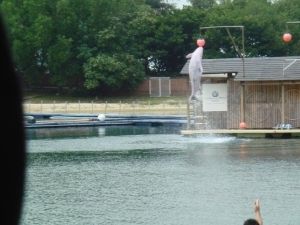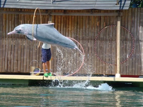 ピンクイルカのショーを最前列で見ることができ、