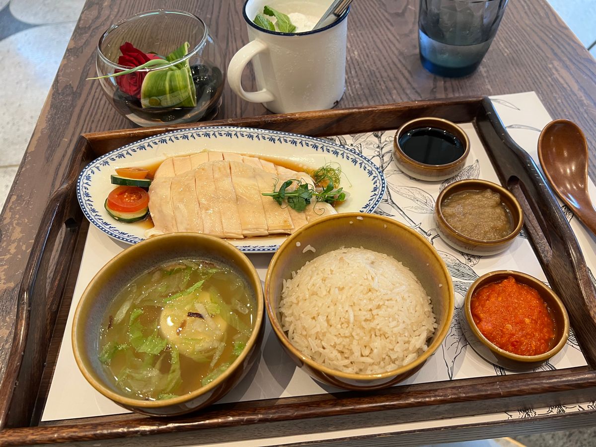 予めバウチャーを紙で印刷しておき、受付で提出。すぐに席へ案内され、ドリンクは付いてないので追加で注文してねと案内あり。ココナッツシェイクを注文。その後はドリンク→前菜→メインのチキンライス→デザートが私の食べるペースに合わせて運ばれてきました。英語で注文する自信が無い方にオススメします!