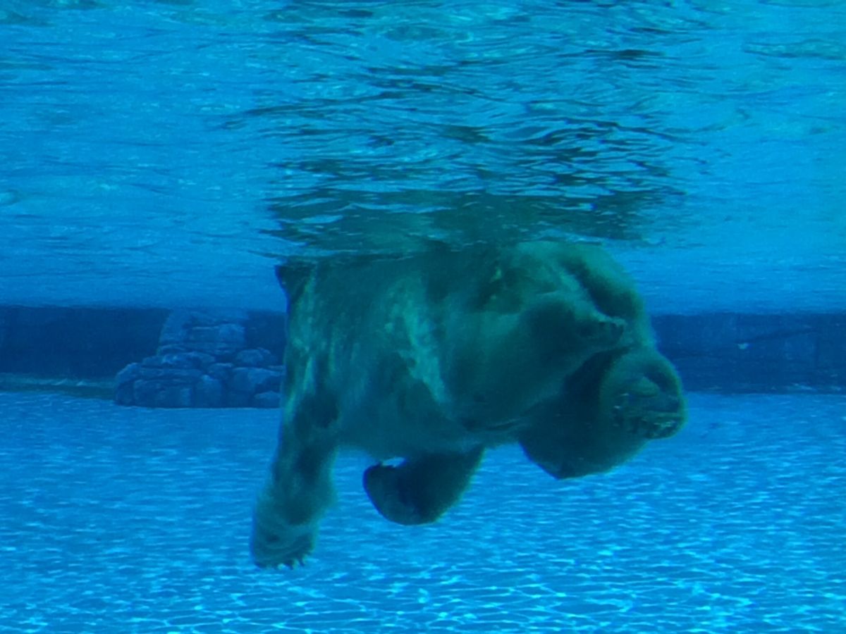 ガイドさんおすすめのシロクマのえさやりに感激。