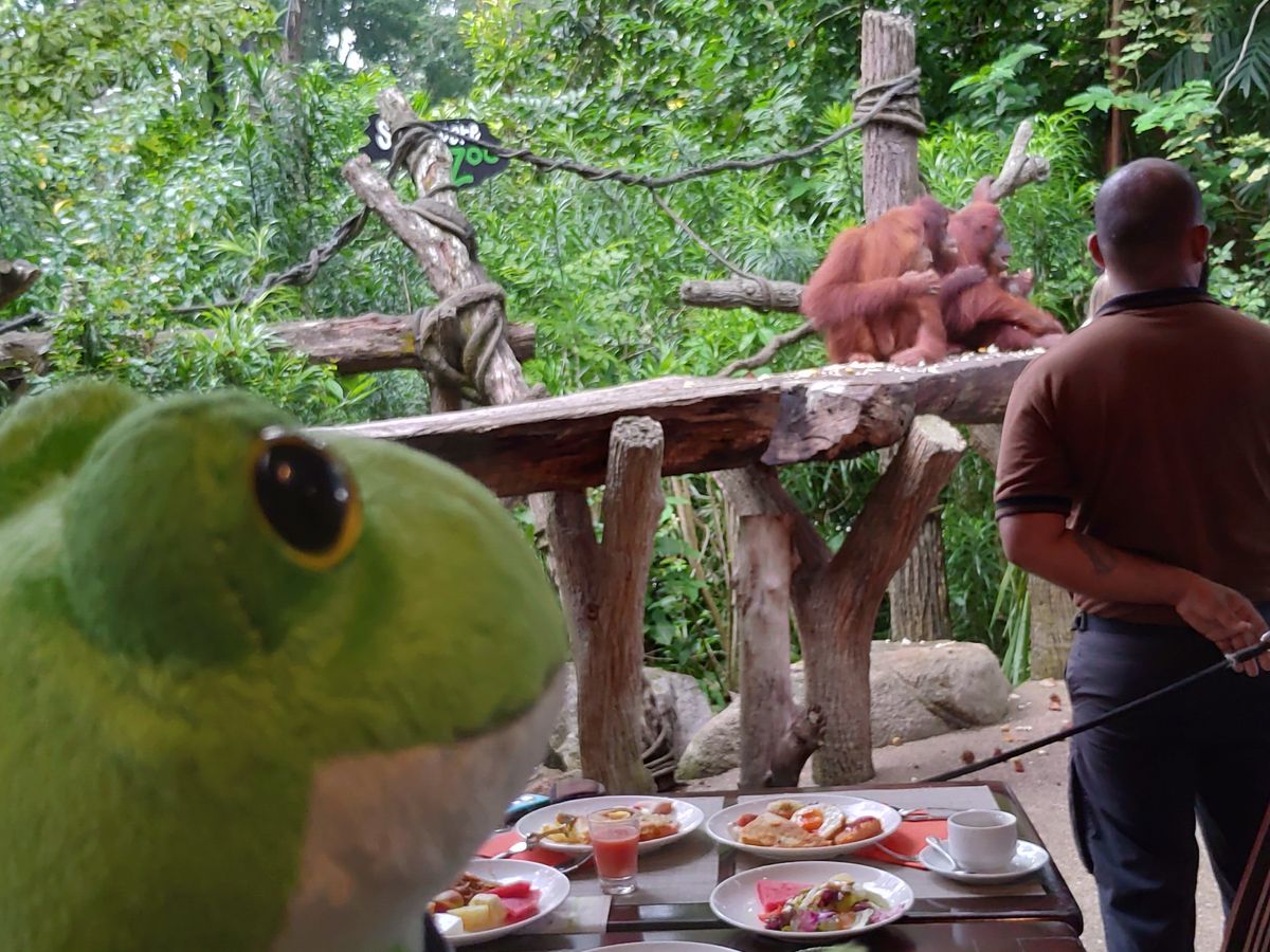 朝食会場は ナイトサファリと同じアーメンレストランで 内容も悪くないと思います。 ここでオランウータンや 蛇を手に持ちながら 写真を撮れます