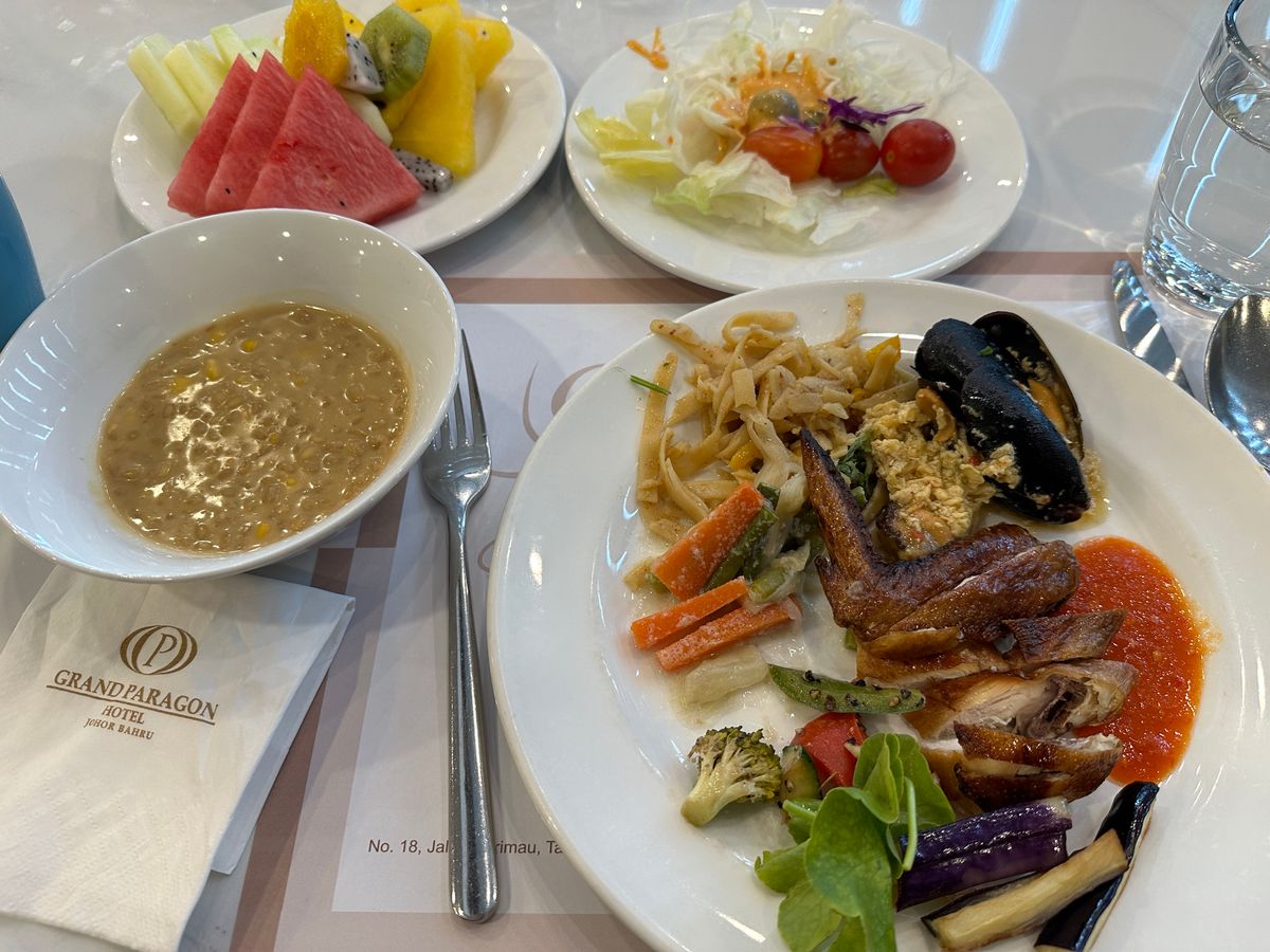 お昼はジョホールバル中心街のヒルトン系ホテルのビュッフェバイキングを頂戴しました。マレー料理、インド料理、中華、お腹いっぱい食べることができました。