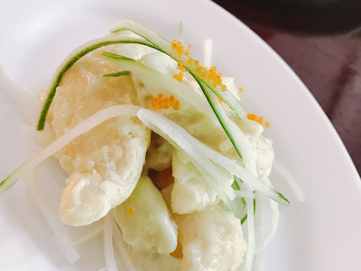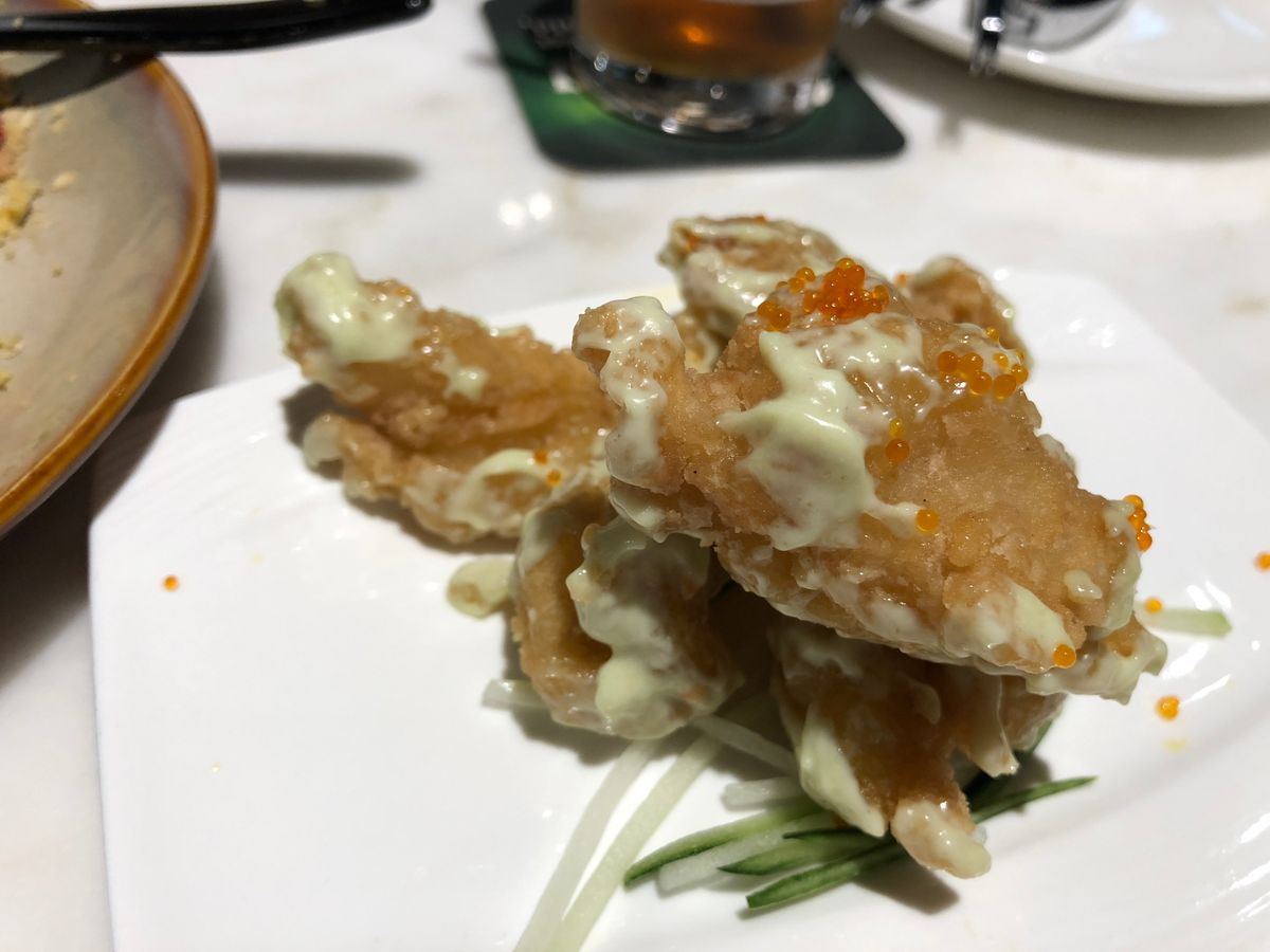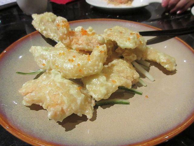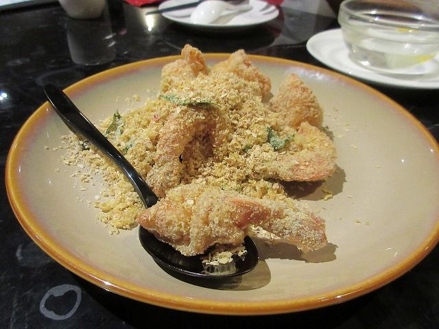前菜に出てきた料理、エビはすごく美味しかったです!あれにチリソースでもとっても合いそうです。エビチリになってしまいますけどね。