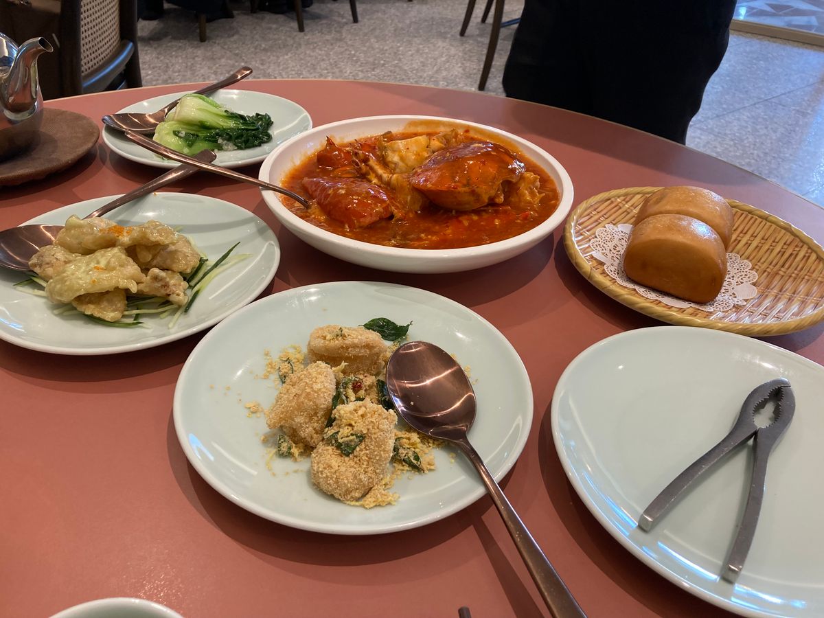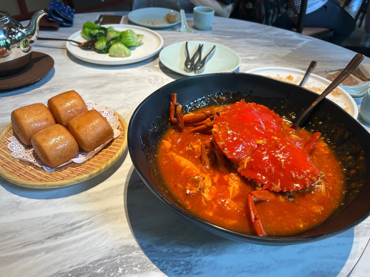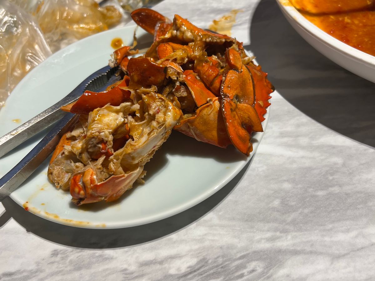 チリクラブ自体は大きすぎずちょうど良かったです。エビチリみたいな味付けでそこまで異国感のある味ではなかったです。