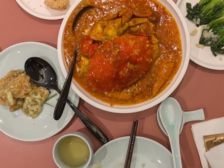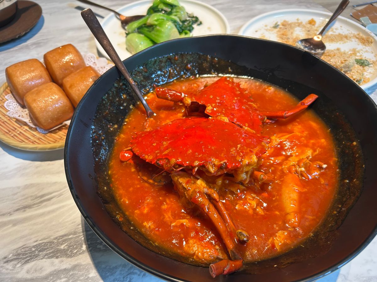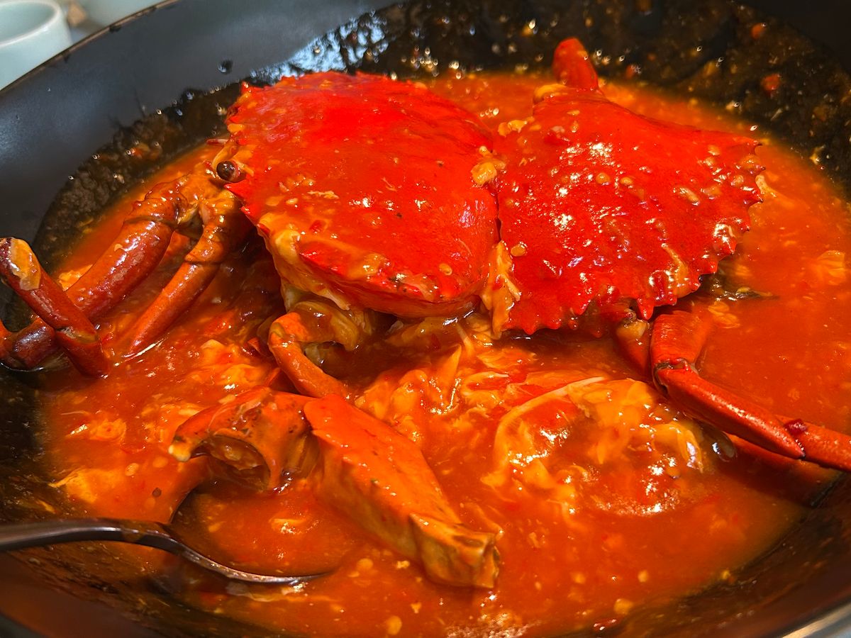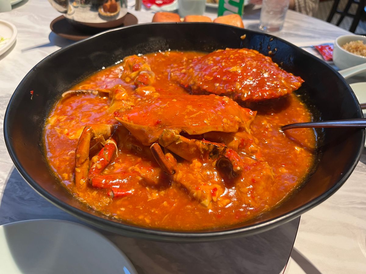 チリクラブ自体は大きすぎずちょうど良かったです。エビチリみたいな味付けでそこまで異国感のある味ではなかったです。