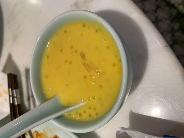 コースのお料理はどれも美味しくて、蟹のソースはパンにつけたり、炒飯にかけたりして全ていただきました。デザートも濃厚なマンゴーにポメロが爽やかで、いくらでも食べれそうでした。