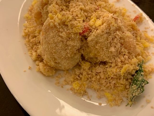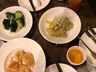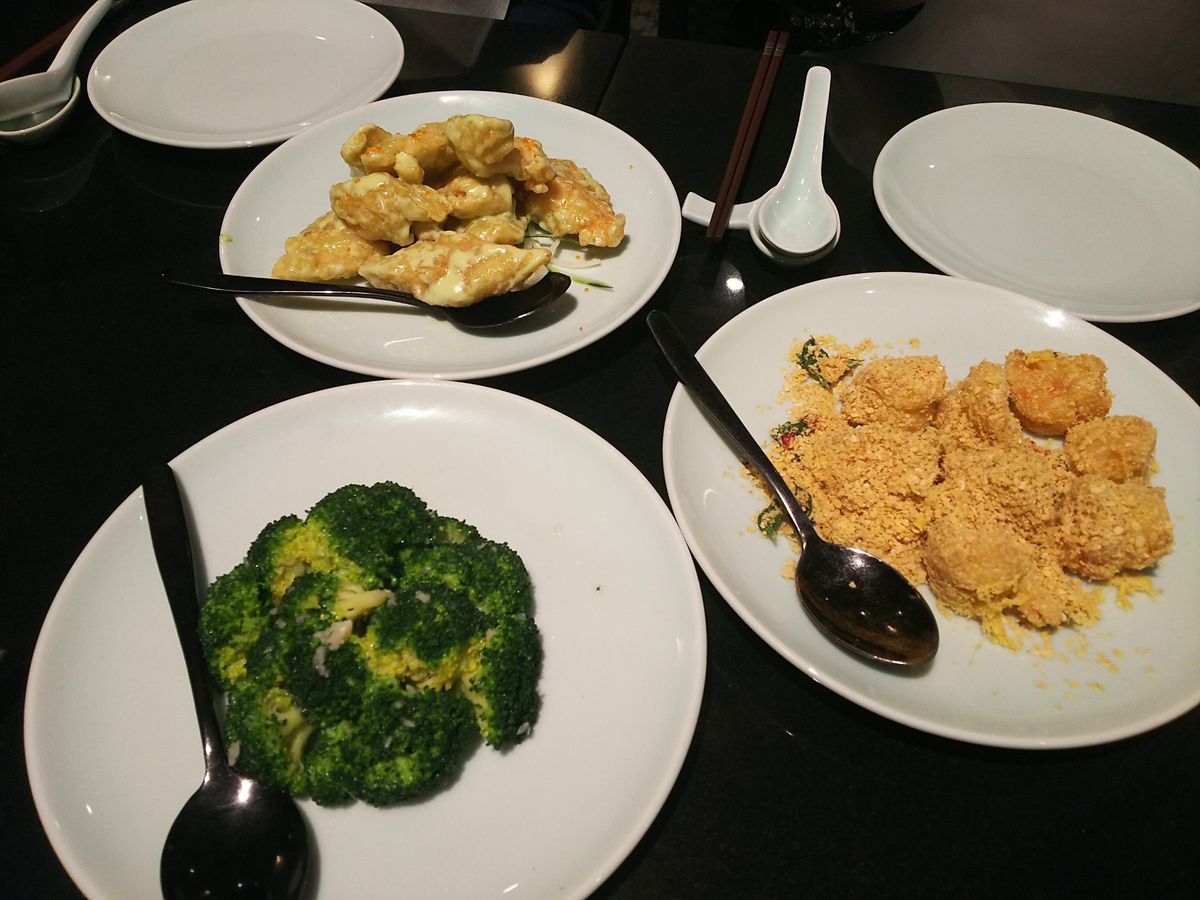 何より、量り売りで時価のメニューに慣れていないので、いくらになるか心配せずに適量の食事が出てくるのはとっても安心で便利でした。料理も普通においしくて、ソースはチリといっても辛さはそれほど感じず、揚げパンにすごく合います!