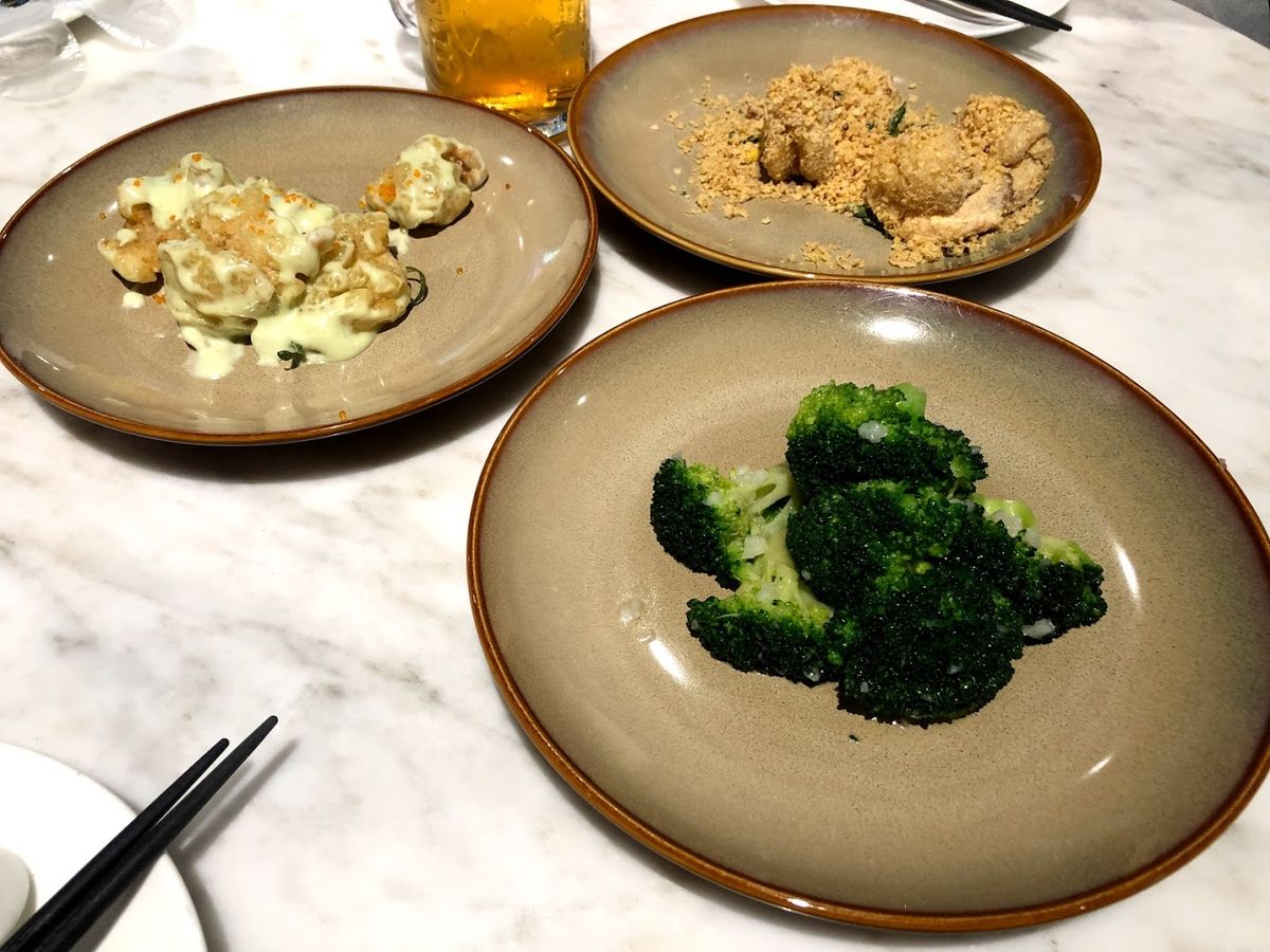 前菜があり、ブロッコリーのにんにく炒め。揚げ物次に待ちに待った