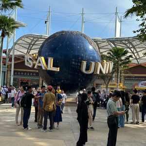 セントーサ島は無料のモノレールが3分おきぐらいで走っていて、USSは駅直にあります!開園前に入場ゲートが開くことが多いので、早めに到着して、エントランスで写真撮影したり、行き先を確認したりかまオススメ