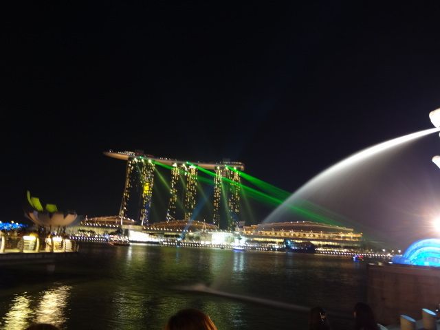 空港→ラッフフルズホテルのロングバーでお約束のシンガポールスリング→マーライオン公園→シティサンテックを車でグルってしてもらい、→サンズスカイパークへ。見学終わって電話をするとすぐ
