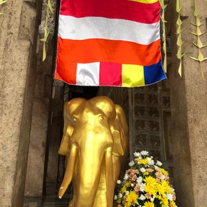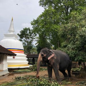 そしてこれもたまたまですが、ポヤデイ(満月の日)ウィークリーにもあたり、象が電飾衣装に着替えてキャンディの街を練り歩くお祭りの日てもあり、仏歯寺ではその準備に追われていました。スパンコールや刺繍が施された衣装を間近で見れてラッキー。象たちも夜の祭りの準備のためにお寺にたくさん集まっていました。