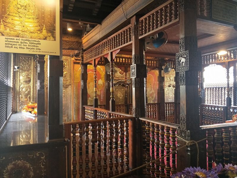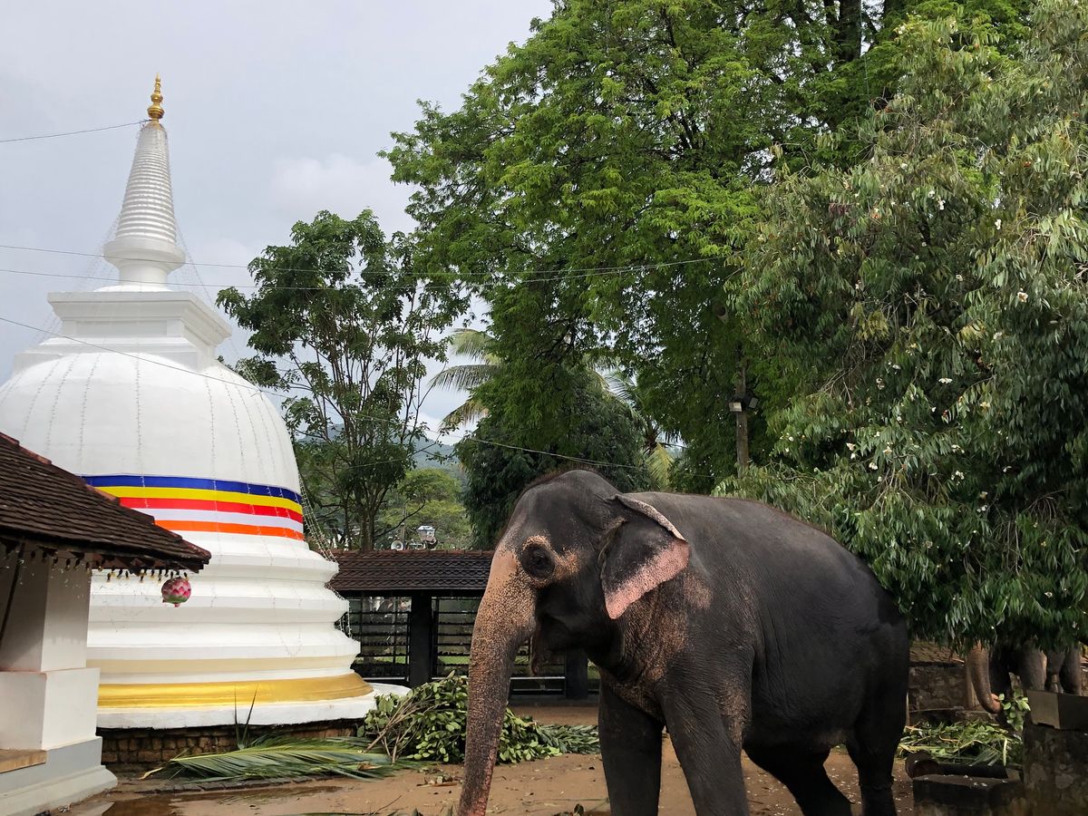 そしてこれもたまたまですが、ポヤデイ(満月の日)ウィークリーにもあたり、象が電飾衣装に着替えてキャンディの街を練り歩くお祭りの日てもあり、仏歯寺ではその準備に追われていました。スパンコールや刺繍が施された衣装を間近で見れてラッキー。象たちも夜の祭りの準備のためにお寺にたくさん集まっていました。